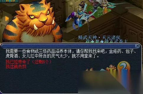 提示:可以先杀小,待大力金刚说“放弃防守,召唤队友”并召唤后击杀该大力金刚,如果提前击杀则该大力会神佑;大力会鹰击,这往往是团灭点;共会有三次召唤,最后一次召唤出的BY阴阳伞会通过吸取普通阴阳伞的生命来增强自己。建议HS先拉防御,如有DT前期可平砍或破血弱点小怪,大力召唤后尽快扫死大力;如带封系(除WZ外)可尽量封住大力,避免其变身鹰击。 第五层(镇星)—— 交给镇星星主氐土貉5个暗器,分别交给位于场景四角的四象(青龙白虎朱雀玄武)各5个烹饪或3药(金疮药、包子、虎骨酒、女儿红除外),再交给氐土貉5个2J家具或金柳露。