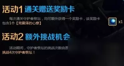 守护者祭坛更新由原来的一天3次增加到一天4次,当然还是指的是每周六和周日。