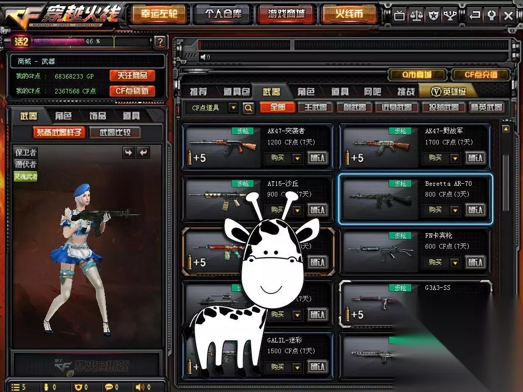 AR-70目前游戏商城是可以点券购买到,4500CF点/30天、16800CF点/365天。小编拿AR-70一般都是ACE啊~