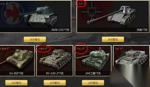 3、选车环节:你一周有1400军功,可以选最强打钱车天蝎+娱乐车KV220,仅仅只要900军功。其余的可以选LT、MT等用来做任务练成员。 十分不建议攒多了换永久车这种行为。你每周都有几辆7天免费车,要什么永久车?何况天蝎比粑粑虎不知道强到哪里去了。 各人感觉这个东西比兵工厂给力的多,不知道会不会比兵工厂长寿一点! 如转载涉及版权等问题,请作者与我司联系,我司将在第一时间删除或支付稿酬。
