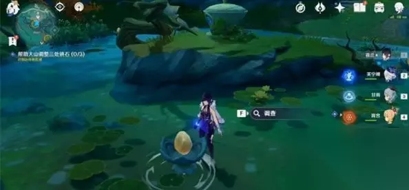 时间:2024年01月31日 原神帮助大山调整三处镇石怎么做?原神帮助大山调整三处镇石怎么完成?下面小编给大家整理了原神帮助大山调整三处镇石攻略,快来看看吧! 原神帮助大山调整三处镇石: 1.原神帮助大山调整三处镇石(西): (1)先与水镇石共鸣,池塘中的莲花灯会移动位置,等待莲花灯停止移动。