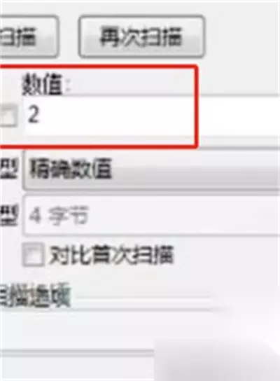 3、进入修改器,点击扫描游戏,在右边的数值上填入2这个数字;