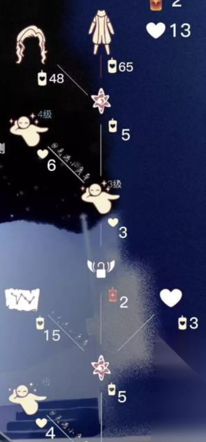 二、先祖物品兑换 1、虚荣先祖预言复刻兑换图可参照下图,头发预计48支蜡烛,裤子65支蜡烛,若要兑换所有道具则需141个支蜡烛;