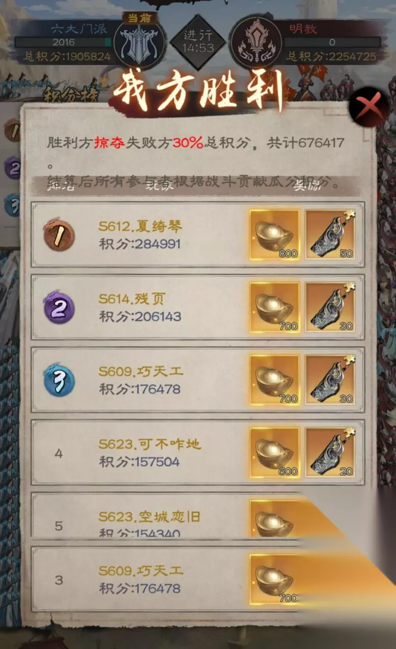 排名越高,获得的积分越多,从而可以获得更多的神兵碎片和元宝。积分可以在决战商店用于兑换各种物品。个人建议在积分充足的情况下,优先兑换神兵,然后是宠物进阶丹,接着是名望贴。如果还存在其他需要,可以酌情进行兑换,另外强调一下伏魔禅指功卷——当另外两个功法达到9级左右时,决战商店的重点可以放在伏魔禅指功卷上,等到10级直接融合!