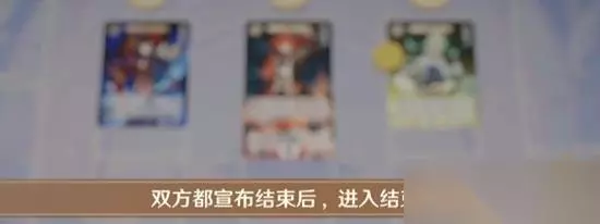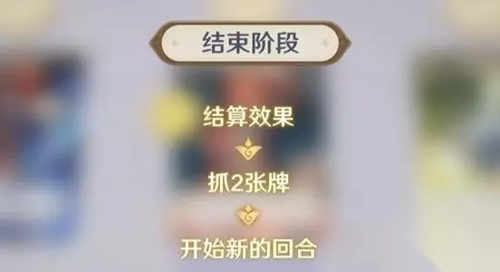 先选择宣布结束的玩家成为先手玩家,对手为先手玩家将硬币调整为数字1,我方为后手玩家将硬币调整为图案。对方战斗行动后轮到我方行动,我方选择切换角色行动,支付一个元素骰,将硬币转移给另一个角色,砂糖成为了我方新的出战角色。由于对方已宣布结束,所以我方继续行动。由于我方元素骰消耗完毕,也选择宣布结束行动,双方都宣布结束后进入结束阶段。结束阶段双方各抓两张牌后进入下一个回合。