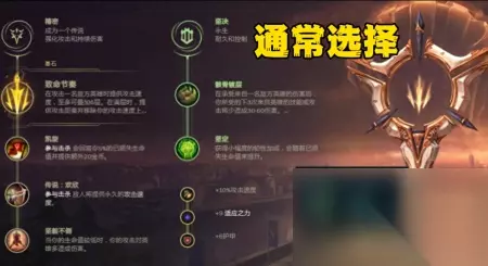 符文选择 武器大师最适配的符文自然是致命节奏,尤其是大招小重做之后,致命节奏对武器大师的提升更大。对于一个老手武器大师来说,与什么英雄对线都可以带致命节奏。不过上单是一个非常拼细节操作的地方,在刚上手武器的时候,可以根据对线英雄选择相位猛冲或者不灭之握。不过需要注意的是,不灭之握对战士的帮助被削弱,所以熟练上手之后尽量避免携带不灭。但是在虐菜的时候,可以更多考虑相位。