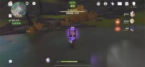 13、到山洞外查看笔记:往地图的西北方向下飞,前往水池边,与绫华对话结束,完成任务「恒久之约」;