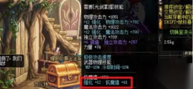 2、强化装备: 强化带有抗魔词条的装备,并携带在角色身上,也能提升角色的抗魔值。