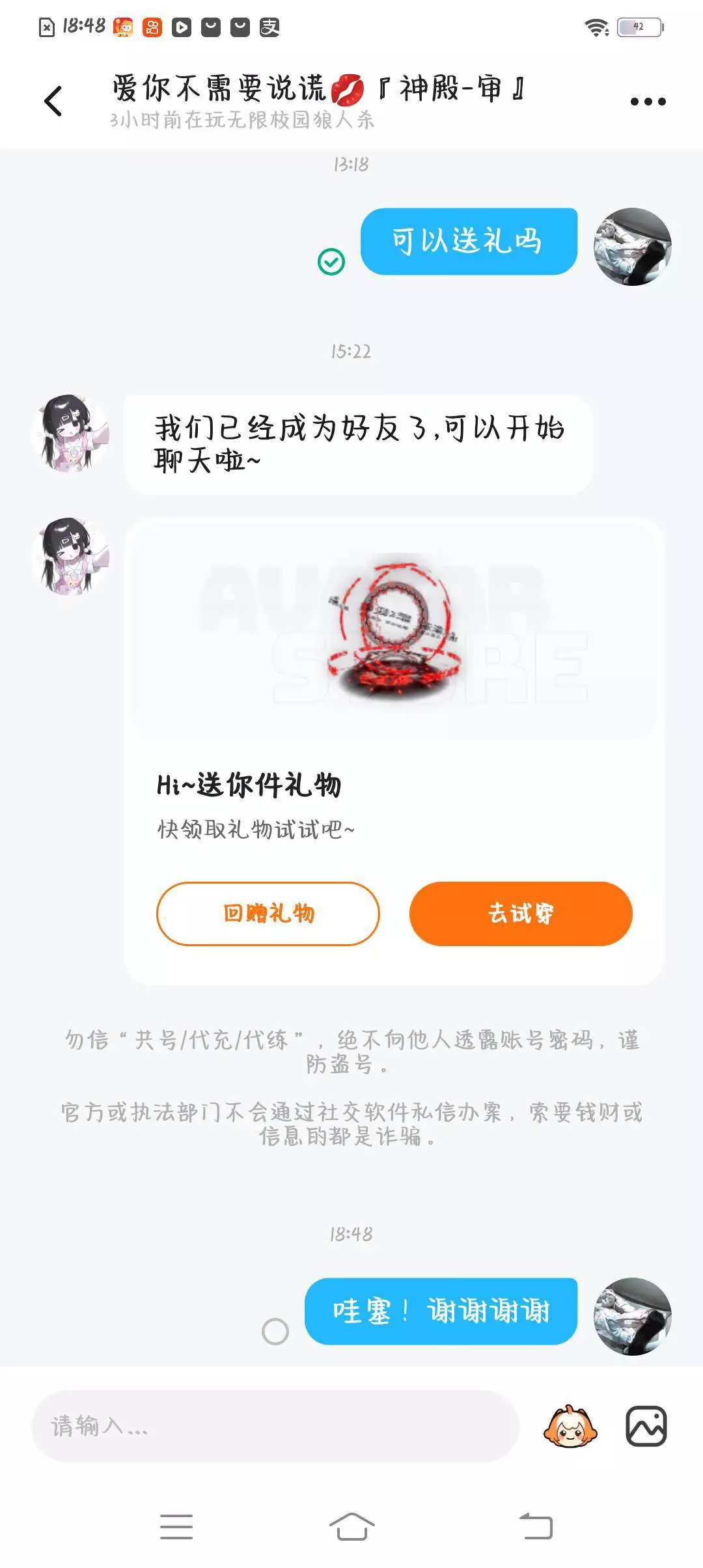 啊啊啊啊!人超好,刚加上就送礼