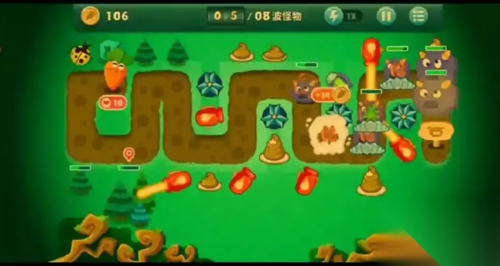 保卫萝卜终极挑战44攻略 BOSS战:在面对BOSS时,可以利用暂停功能来增加攻击效率。如果有打不到BOSS的炮塔,可以考虑卖掉,然后在萝卜附近放置顶级电塔。道具使用:在游戏过程中,合理利用各种道具,如冰冻星星、便便炮塔等,可以有效控制怪物的移动速度,为防御塔争取更多的攻击时间。资源管理:在游戏中,要注意资源的管理。卖掉不必要的道具和防御塔,以便为更有效的防御塔腾出空间和资源。持续调整:在游戏过程中,根据怪物的出现情况和防御塔的效果,不断调整防御塔的布局和升级策略,以达到最佳的防御效果。
