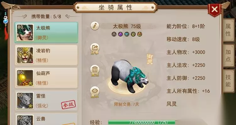 二、培养熊成为坐骑的步骤 2.1熊的捕捉与驯养 在将熊变成坐骑之前,玩家需要先捕捉到熊,并对其进行初级驯养。以下是捕捉和初步驯养熊的步骤: 寻找合适的捕捉地点:通常在某些特定的地图或怪物聚集区域可以找到不同种类的熊。 使用捕捉技能:当遇到野生熊时,使用捕捉技能尝试将其抓获。成功后,熊会成为玩家的临时宠物。 进行基础驯养:在捕捉成功后,需要对熊进行喂食和训练,提升其忠诚度和配合度,为其成为坐骑打下良好基础。 2.2提升熊的等级与属性 在培养熊成为坐骑的过程中,提升其等级和属性是至关重要的一步。玩家可以通过战斗、任务等方式来增加熊的经验值,当经验值达到一定数值后,熊便可以提升等级。 2.3获取坐骑技能书 为了使熊变成坐骑,玩家需要获得特定的坐骑技能书。在问道中,可以通过完成任务、购买或与玩家交易等方式获得。 2.4学习坐骑技能 获得坐骑技能书后,玩家需要让熊学习这个技能。在学习之后,玩家的熊宠物就可以变成坐骑了。学习坐骑技能后,熊将在玩家的宠物栏中转变为坐骑栏。 2.5乘坐熊坐骑 学习了坐骑技能后,熊在特定情况下就能被作为坐骑使用。玩家可以在城市或是非战斗区域乘坐熊,提升移动速度,享受独特的游戏体验。