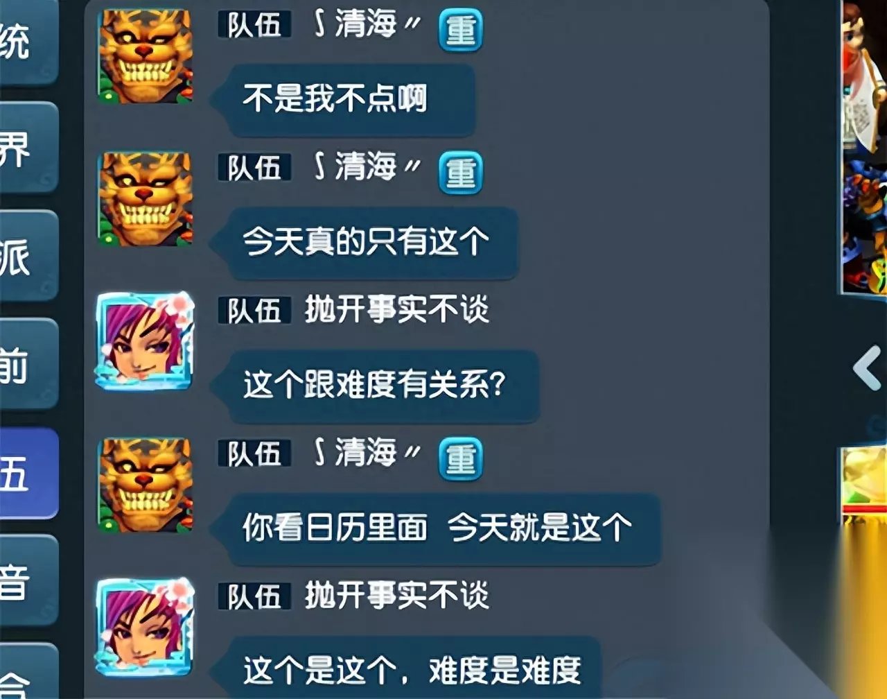 上面的这两位玩家是因为神器任务的难度问题而产生的矛盾,队长表示自己只能够选择一星难度,而其他的队友都是嫌弃队长选择的神器任务的难度太低了。 其实上面的这两位玩家都没有错,错的是任务设置的问题,在神器任务玩法中,如果带队的队长没有完成过该任务玩法,在本次神器任务玩法中就只能领取一星任务,完成了一星难度的神器任务后才能够领取二星,以此往后推,多次完成同一类型的神器任务后才可以解锁更高难度的神器。 59小号出了160的专用高伤不磨,升级升到快吐了