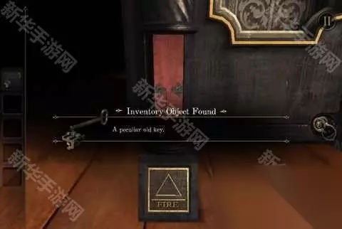4、箱子四腿有四种元素,根据谜语推断为火,点击FIRE的选项,拿到钥匙