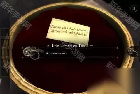3、双击纸片,得到谜语提示 谜语意思是喂吃的就能活下来,给喝的就会死去