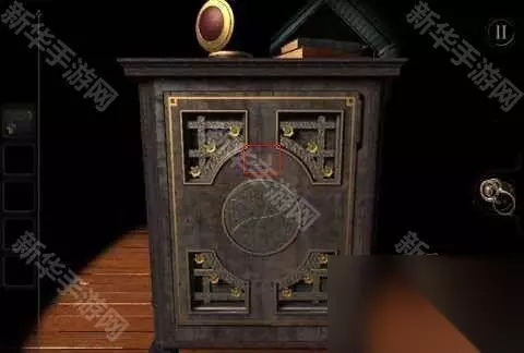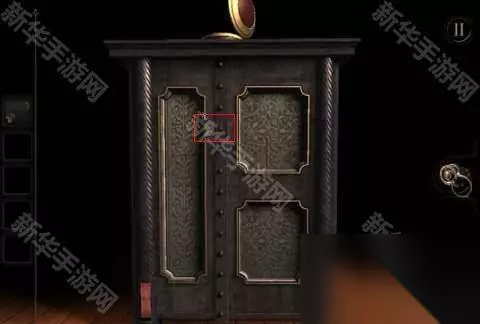 9、回到正面,红色的小门推开,看到钥匙孔
