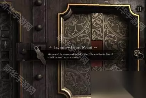 5、钥匙可以切换成不同的形状,这样我们可以打开不同的钥匙孔。 侧面有个地方缺了一块,推开发现钥匙孔,用相应形状的钥匙打开,拿到奇怪的扳手