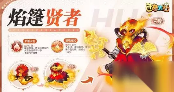 西普大陆手游中都有哪些精灵? 1、焰篷贤者 代表技能:扩散火花 魔法攻击,放出大范围的火花攻击所有对手,攻击对手全体。