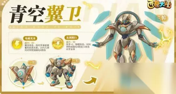 6、青空翼卫 代表技能:电磁光束 魔法攻击,向对手发射储蓄的负荷光束,25%几率对对手附加磁化4回合。