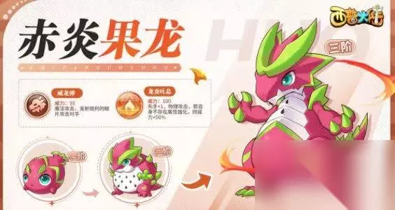 2、赤炎果龙 代表技能:威龙弹 魔法攻击,发射锐利的鳞片攻击对手。
