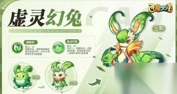 9、虚灵幻兔 代表技能:棘刺拳 物理攻击,用附带荆棘的拳法攻击对手,50%几率降低对手1级速度。