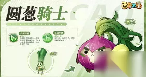 3、圆葱骑士 代表技能:尖刺护盾 用荆棘包裹自身,4回合内自身受到攻击时,对攻击方造成自身物防*20%的额外伤害。
