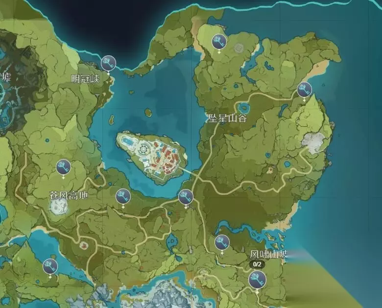 原神蒙德地灵龛分布图 位置总览: