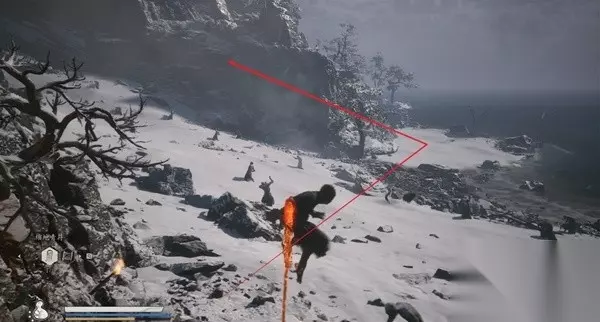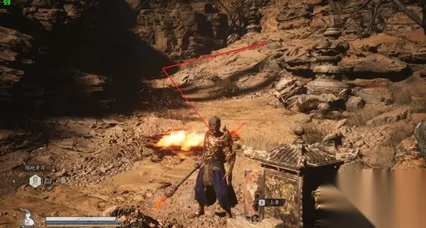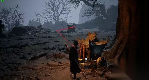 13、百目真人「黄风阵—镇风门」 往上走左侧树下就能看见「正常你下来开土地庙就会打掉」