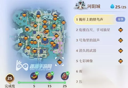 梦幻新诛仙中,探灵作为一个特色玩法,不少小伙伴们找不齐灵兜兜的位置,这里就给大家带来了梦幻新诛仙河阳城灵兜兜位置,不清楚灵兜兜都出现在哪里的话,就一起来看看下面的河阳城探灵位置地点。 河阳城的灵兜兜位置一共有25个,具体的位置地点如下: 【河阳城1】桅杆上的怪鸟声 【河阳城2】危楼百尺手可摘星 【河阳城3】号角里的鼓声 【河阳城4】消失的武器 【河阳城5】七彩神像 【河阳城6】观战者 【河阳城7】压不住的棺材板 【河阳城8】屋顶的岳老板 【河阳城9】色即是空 【河阳城10】牢笼里的冤屈 【河阳城11】湖泊上的长明灯 【河阳城12】落花有意流水无情 【河阳城13】逃离罚恶司 【河阳城14】黄钟余音绕梁 【河阳城15】曲径通幽 【河阳城16】天道 【河阳城17】渡船上有局 【河阳城18】遗失的书卷 【河阳城19】形单影只的鸳鸯 【河阳城20】君子爱财取之有道 【河阳城21】这个果子不卖 【河阳城22】锁死的染料匣 【河阳城23】上善若水 【河阳城24】河阳二十四时辰 【河阳城25】观棋不语真君子