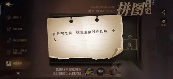 在分院之前这里迎接过你们每一个人拼图寻宝攻略就介绍到这里了,小伙伴们赶紧去完成任务吧~更多精彩内容可以多多关注233乐园网,我们将为你带来更多热门好玩的游戏资讯和攻略内容!