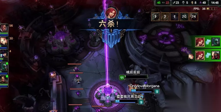 英雄联盟六杀争夺战玩法攻略 扭曲丛林本来是不支持这么多人进行混战的,双方总共十二个人在资源有限的地图中推倒敌人的水晶。扭曲丛林只有两条路通往对方,要说线路分配也没有过多的讲究,最常见的便是上路3人,下路3人,资源平均分配;还有一种便是抽出来一人来进行打野,同时兼顾上下路的支援,但是这问题有出来了,扭曲丛林的野区资源还是很匮乏的,也不能过于深入,在前期过于深入地方阵营的结果就是被多人击杀,在这里很明确的阵容分配没太明显的作用。 开局抢占位置是很重要的一点,中间的草丛一般是双方集结的地方,也是一级团最容易爆发的地方。此外,在扭曲丛林中要时时注意草丛的动向,这个地图不提供视野这一道具,被人家蹲草丛也是时常发生的悲剧,用技能和小地图上敌人的动向来判明草丛是否安全,尽最大可能地避免“脸探草丛”。