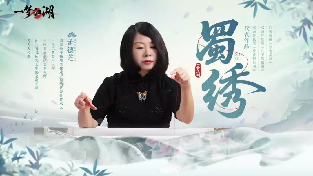 我们还特别邀请了国家级非物质文化遗产代表性传承人、中国工艺美术大师、四川省民间文艺家协会副主席孟德芝老师,为少侠们带来四大名绣之一蜀绣技艺里双面绣的细腻工艺,以锦绣纹样点缀你的江湖衣装。