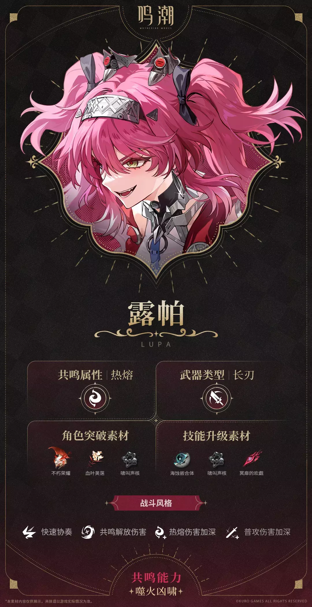 热情率直,如孤狼般具有野性的少女。若是能够一直享受竞技纯粹的快乐,露帕无畏在这赛场燃烧殆尽。