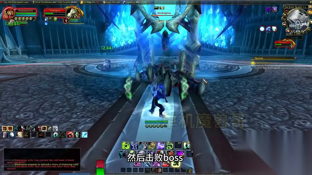 完成千魂之宴后,你将进入橙斧三部曲的第一步。灌注邪恶要求你在获得暗影充能buff的情况下,使用影锋击败普崔西德教授。 完成三部曲中的第一步灌注邪恶后,你将进入第二步——鲜血灌注。你需要装备影锋并参加鲜血女王兰纳瑟尔的战斗,主动被咬并咬其他三个玩家。 完成第三步——冰霜灌注。你需要装备影锋并吃四次辛达苟萨的冰霜突袭技能,然后击败boss,全程不能死亡。这是一个非常需要技巧的橙斧三部曲,对于手残的小白来说,最好雇佣其他人来完成。