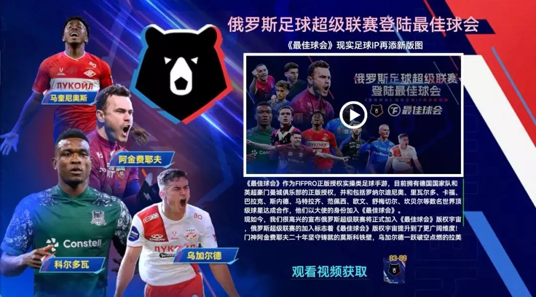 这一次,俄罗斯足球超级联赛的加入,标志着我们的“版权宇宙”再次拓展边界,也展现了我们不断扩大现实足球IP版图的决心!我们希望能为大家带来更多元的游戏体验。