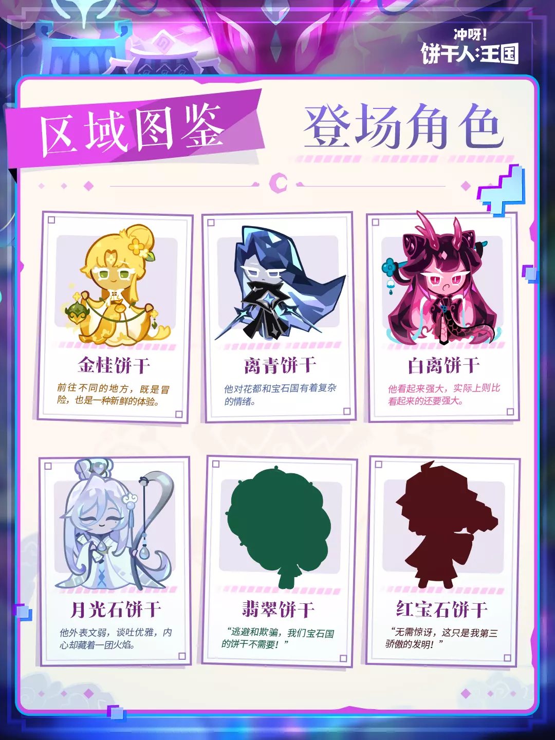 伴随着国风冒险即将正式开启,7月3日也将开启「花都饼干限时返场卡池」饼干朋友们将有较大概率邂逅“腾蛇饼干、山茶花饼干、金桂饼干、丹桂饼干、离青饼干”,共同步入“遗世的宝石王国!”