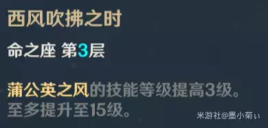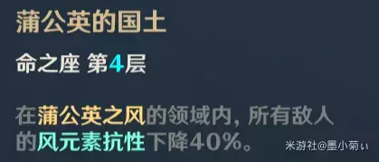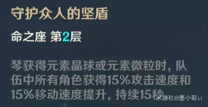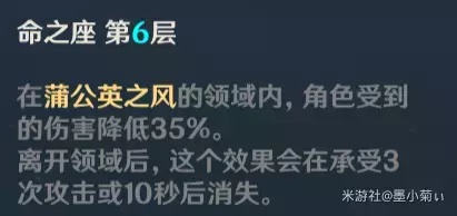 分析:强化元素爆发,减少敌人风元素抗性强势命之座,变相提高了敌人走出领域受到的伤害,配合其他风元素角色能打出不俗的爆发。这个命之座让琴与其他风角色的搭配更契合。