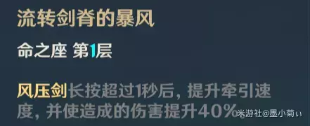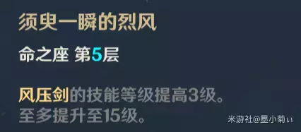 值得一提的是解锁该命座后,当风压剑蓄力达到1S时会有轻柔的音效,想靠风压剑打伤害的小伙伴们就要赶快松手减少体力消耗和冷却时间啦(减少冷却指使风压剑提前进入冷却)。