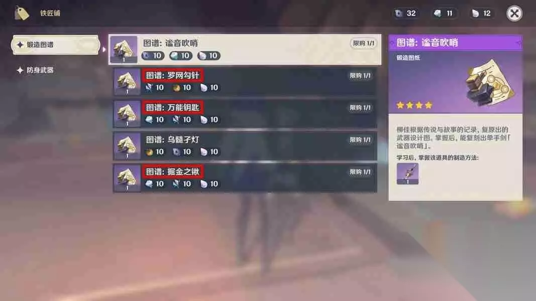 2. 兑换功能 可用于挪德卡莱铁匠铺换取武器锻造图谱