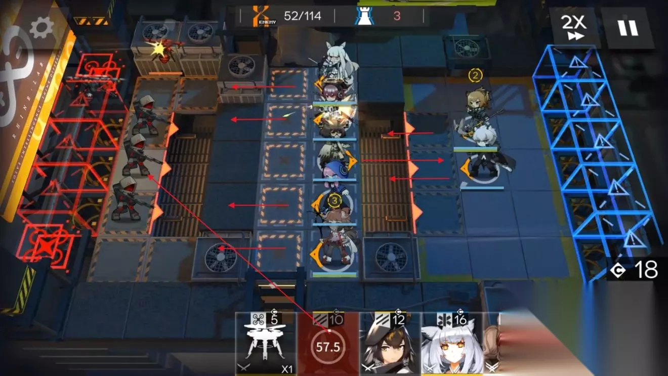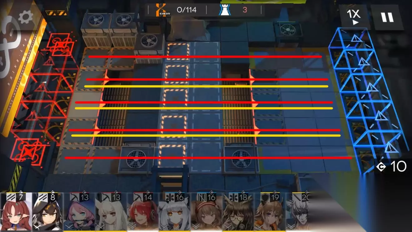 明日方舟新危机合约无人荒楼攻略,新危机合约活动也是上线了,这次活动一些地图还是比较有难度的,相信不少小伙伴都是比较头疼,那么本期就让凛酱给大家介绍一下吧! 新危机合约无人荒楼地图信息 (1)敌军进攻路线 无人荒楼这关的进攻路线相对来说比较直白,一共是分为两路进攻的。一条是空战线(红线),前面5格进攻口都是无人机的进攻路线,还有一条是地战线(黄线),中间3格都是近战单位的作战路线。