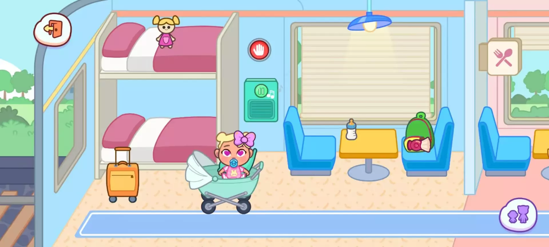 (四)睡眠区:卧铺车厢的夜晚上下铺床位可 “展开被子”“关闭床头灯”,婴儿车支持 “摇晃入睡”(滑动屏幕触发摇摆动画)。紧急按钮点击后会触发 “全车广播” 音效(虚拟语音:“请注意,前方到站……”),适合设计 “深夜紧急停靠” 的突发剧情。