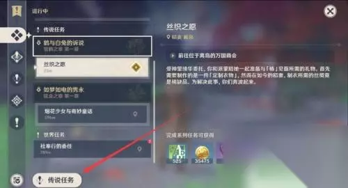 2.随后,点击并进入左下角的“传说任务”。