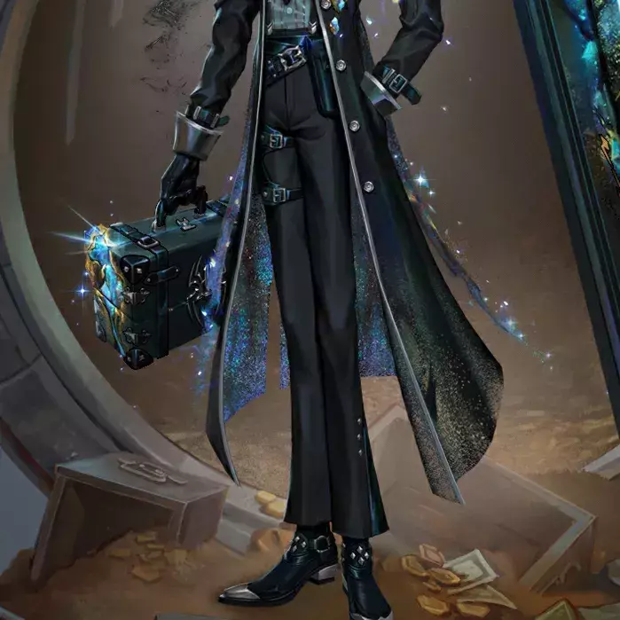 低调的黑色大衣,星空般的光辉在内侧若隐若现。手中保险箱做工精致,仿佛其存在本身便已价值非凡。