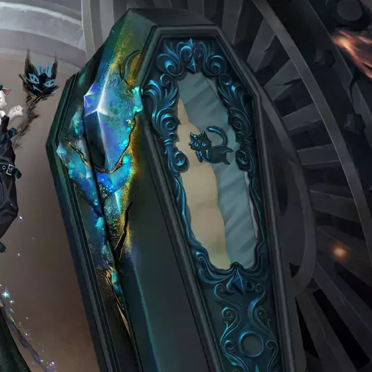 棺材表面刻着小巧的猫咪浮雕,宝石镶嵌其中,焕发出无可比拟的独特光彩。