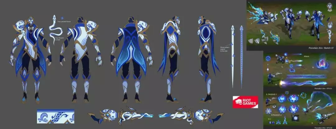 为了让召唤师们更好地欣赏他们优美的身姿,今日隆哥就为大家带来了青花瓷系列新皮肤的美术设计素材,一起看看吧~