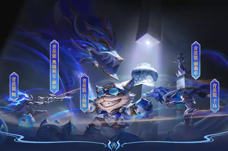 青韵流年,瓷艺新生!青花瓷 奥瑞利安·索尔、青花瓷 吉格斯、青花瓷 烬、青花瓷 千珏、青花瓷 丽桑卓和至臻 青花瓷 丽桑卓以瓷韵为笔绘峡谷新篇,展现出国风艺术与战斗美学的完美交融~
