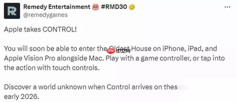 近日,Remedy Entertainment正式宣布其动作冒险游戏《控制》将扩展至苹果生态,计划于2026年初登陆iPhone、iPad以及Vision Pro设备。