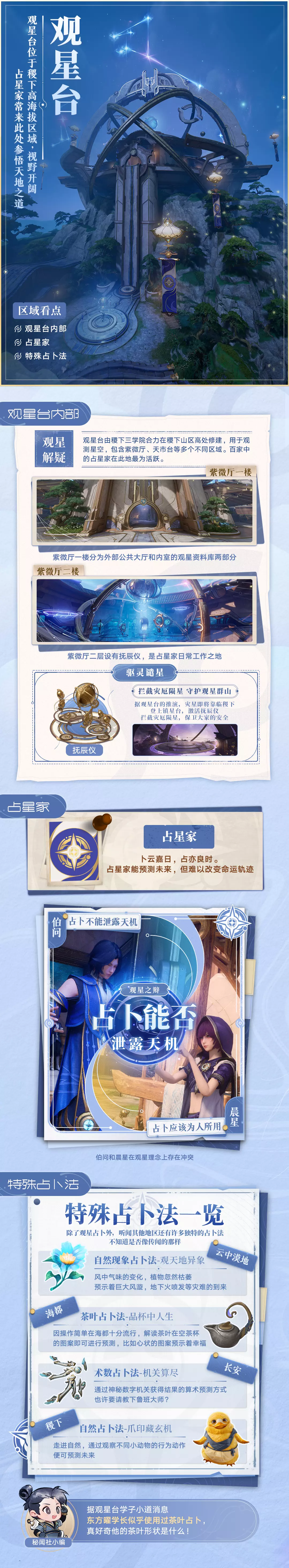正巧秘闻社小编编写了《秘闻小报:观星群山篇》,就让师姐带你品月华,习星术,在云台交错的机关之间,初窥当年的那场对决吧~