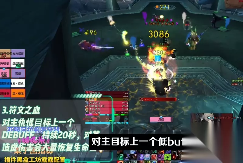 三技术符文之血:对主方针上一个低buff,继续20秒,对其形成损伤呢会很多康复生命值。应对方法是附替,第一时间嘲讽boss换替即可。