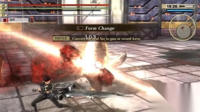 step4.按鼠标右键、鼠标左键都属于攻击操作,而鼠标右键的攻击是带有特殊效果,譬如短剑就是突刺攻击。 按住shift键就可以变换武器的模式,变更武器模式所发动的招式会消耗OP值,射击同样消耗OP值,而用武器普通形态攻击敌人可以恢复OP。