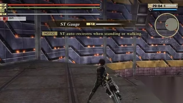 step3.接着系统会为你介绍ST槽,也就是体力槽。 在发动特别的攻击、奔跑、攀爬时会损耗体力,而原地站着就可以自动回复体力。
